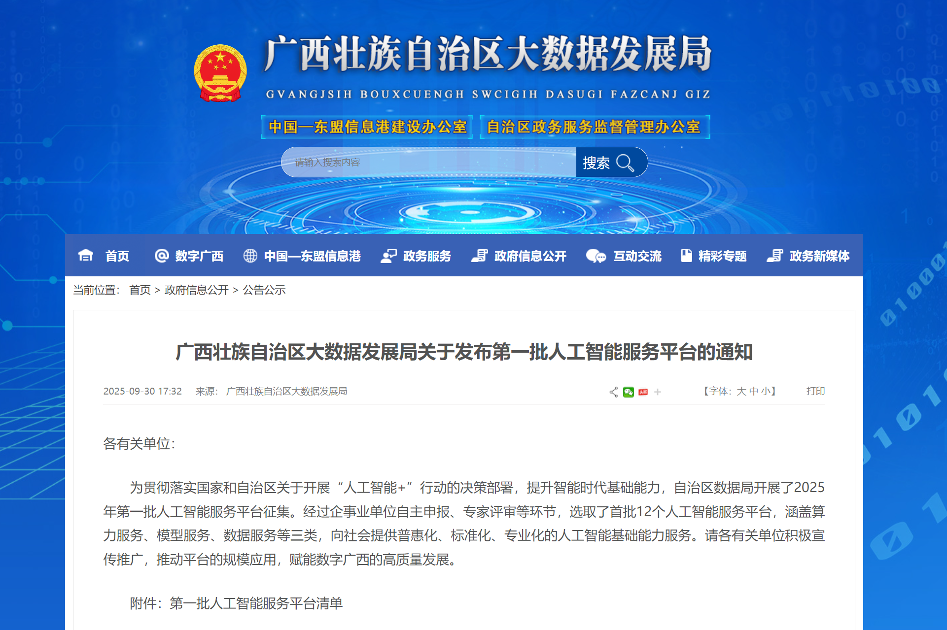 北部灣大數據交易中心成功入選廣西首批人工智能服務平臺名單 2025-10-10